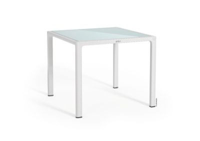 The Lechuza tables are practical and stylish elegant outdoor furniture. The frames have an attractive wicker look. The tabletops have safety glass, and also an opaque underside with optical depth. There are integrated adjustment screws for stability. They are easy to clean, weatherproof and UV resistant.
