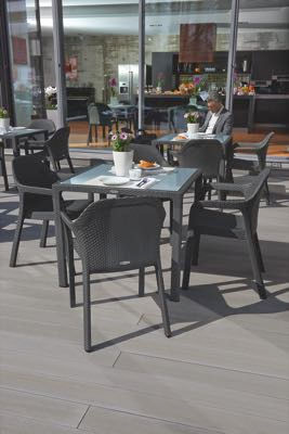 The Lechuza chairs perfectly match the Lechuza tables. They are equally well made and stylish. They all have an air-permeable seat and back. They are UV resistant, frostproof and easy to clean. They are also stackable and light, so you can easily put them away anytime you want.